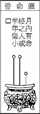 二十四種香譜應用法,凡聖佛仙神慶典,或消災求安,或遇疑難事時,必用好香三炷,選大小均等者焚之,先祈祝後,平排捐於爐中,祭祀畢,約剩半炷香時,視三炷香長短,對照香譜說明,吉凶必現譜中,奇驗靈應如神。拙由北京,萬國道德學院,一位周咸熙先生,贈送斗姥九皇真經,連此香譜,密藏四十餘年,今奉聖命編入救度真經,公開道友,珍重救世是幸。(楊明機 謹識)